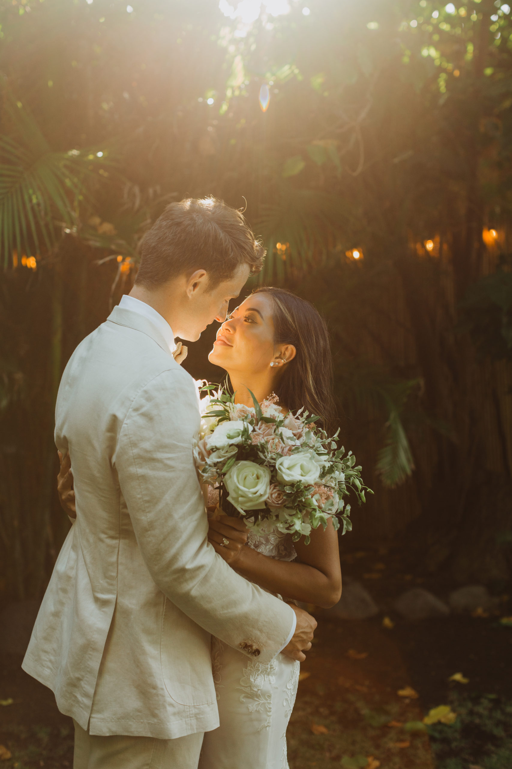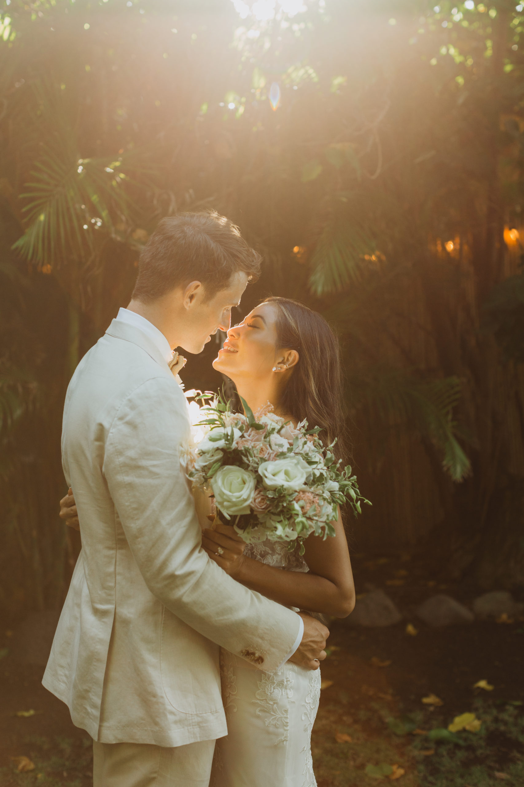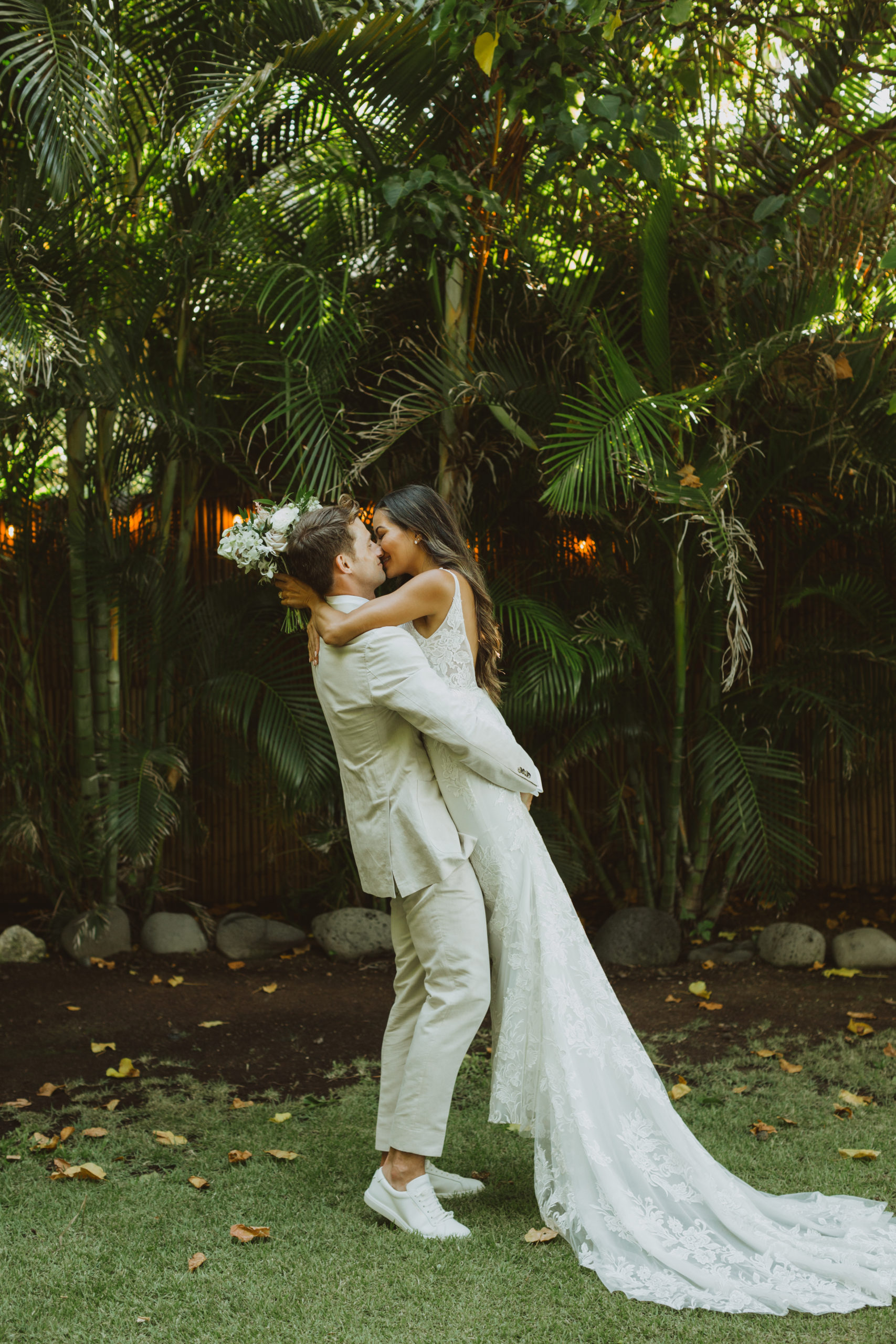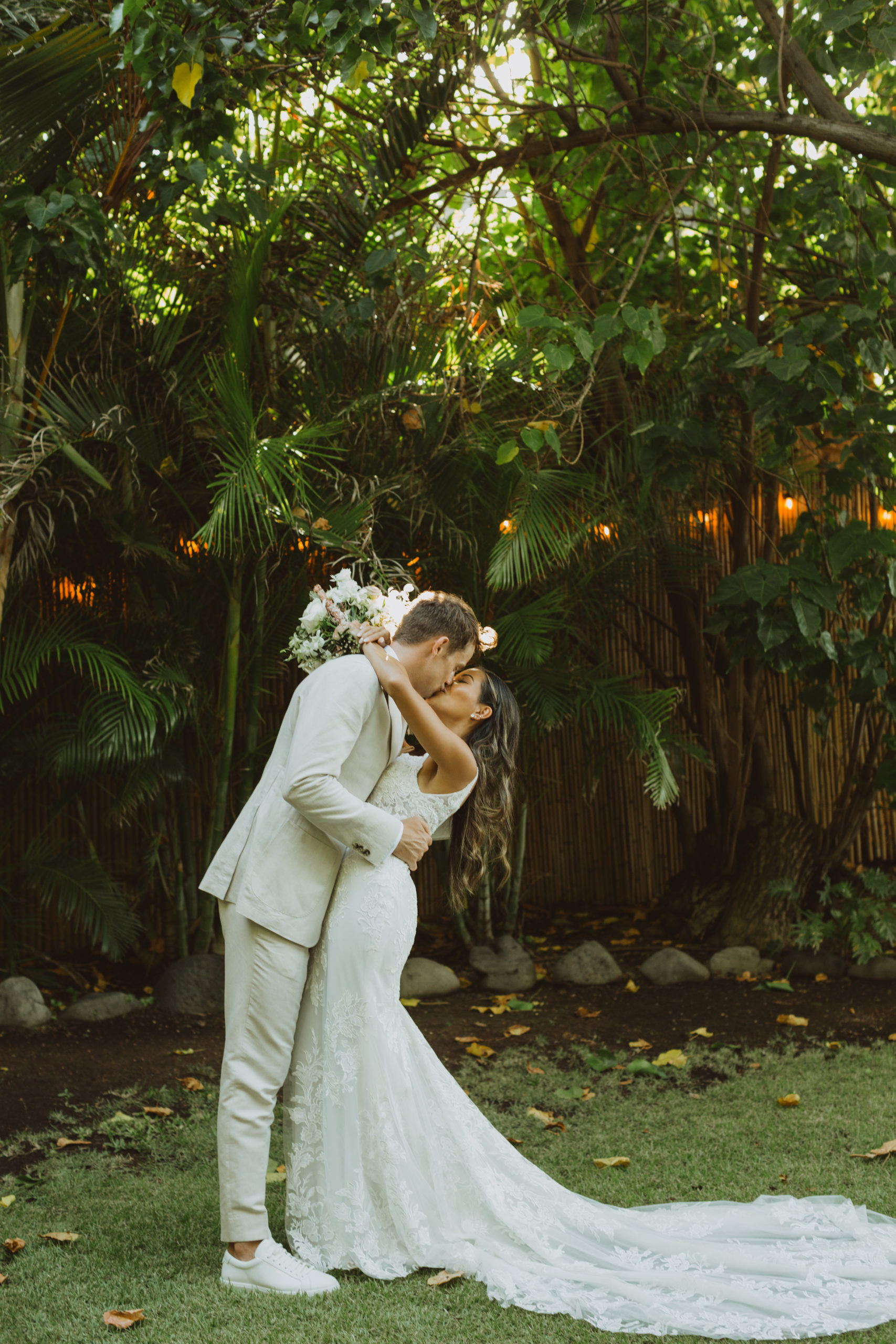 We captured their photos on the front lawn, with all the beautiful Hawaiian tropical greens and ended on the beach with that perfect Maui sunset for their wedding photos. It was pure magic to be apart of.