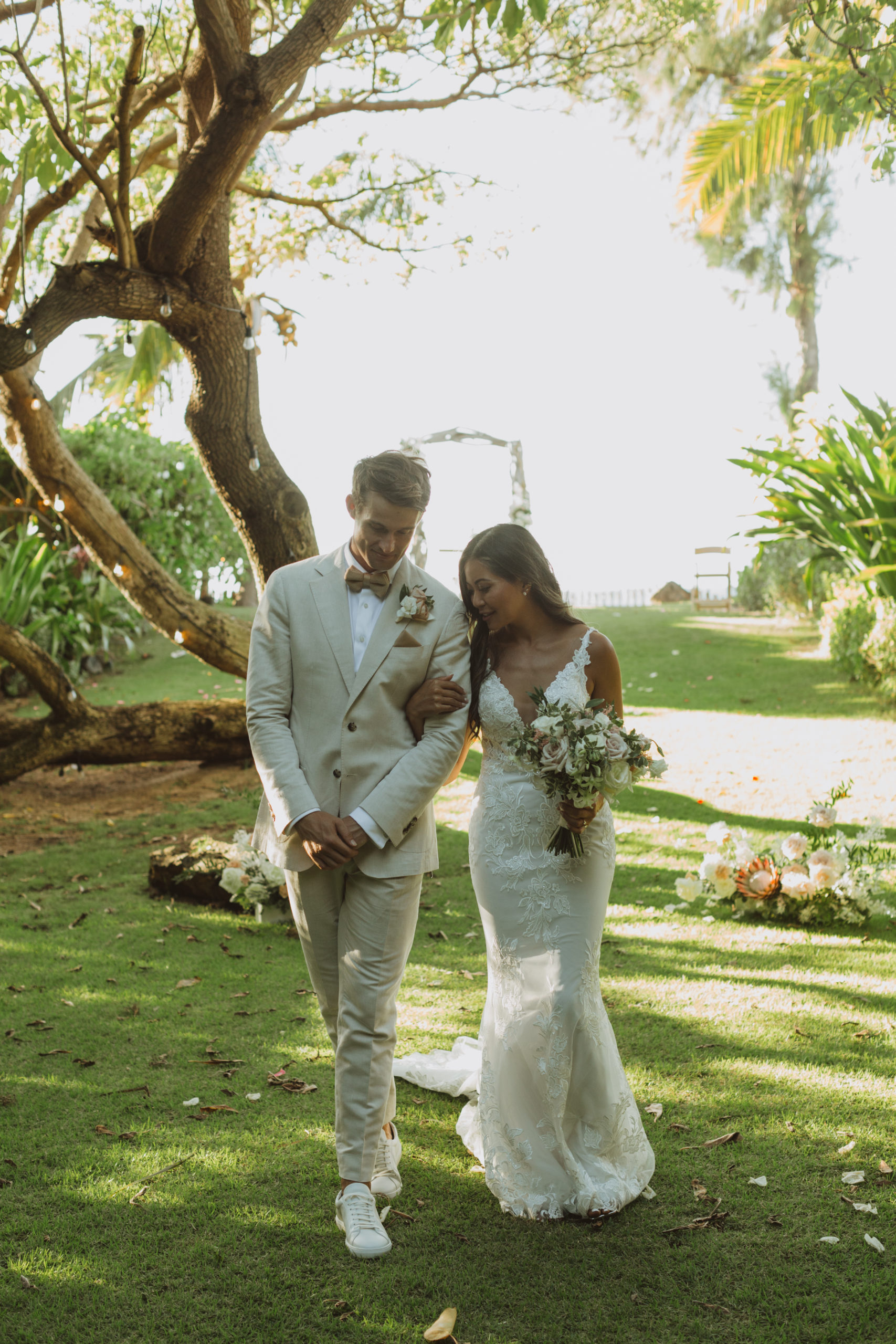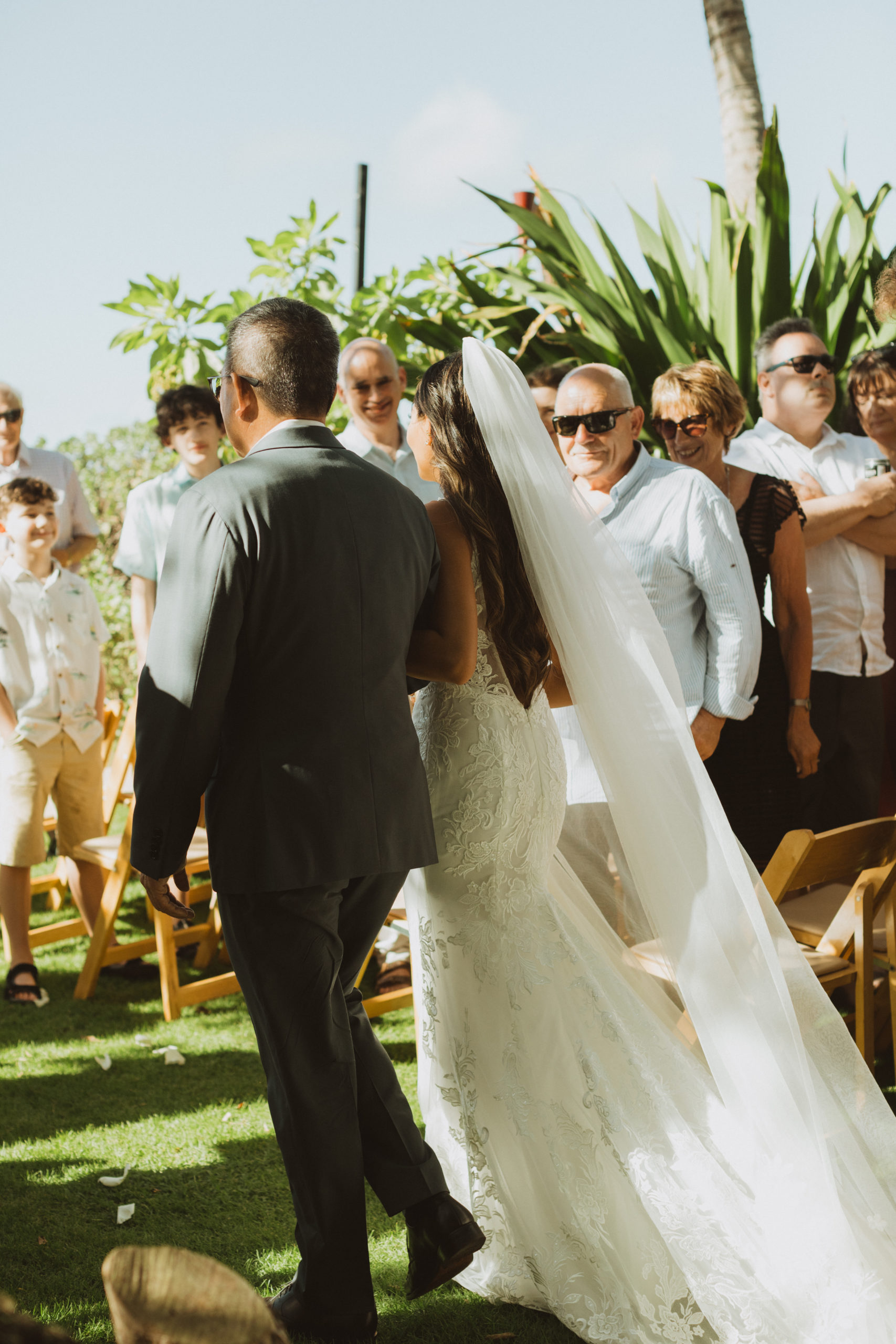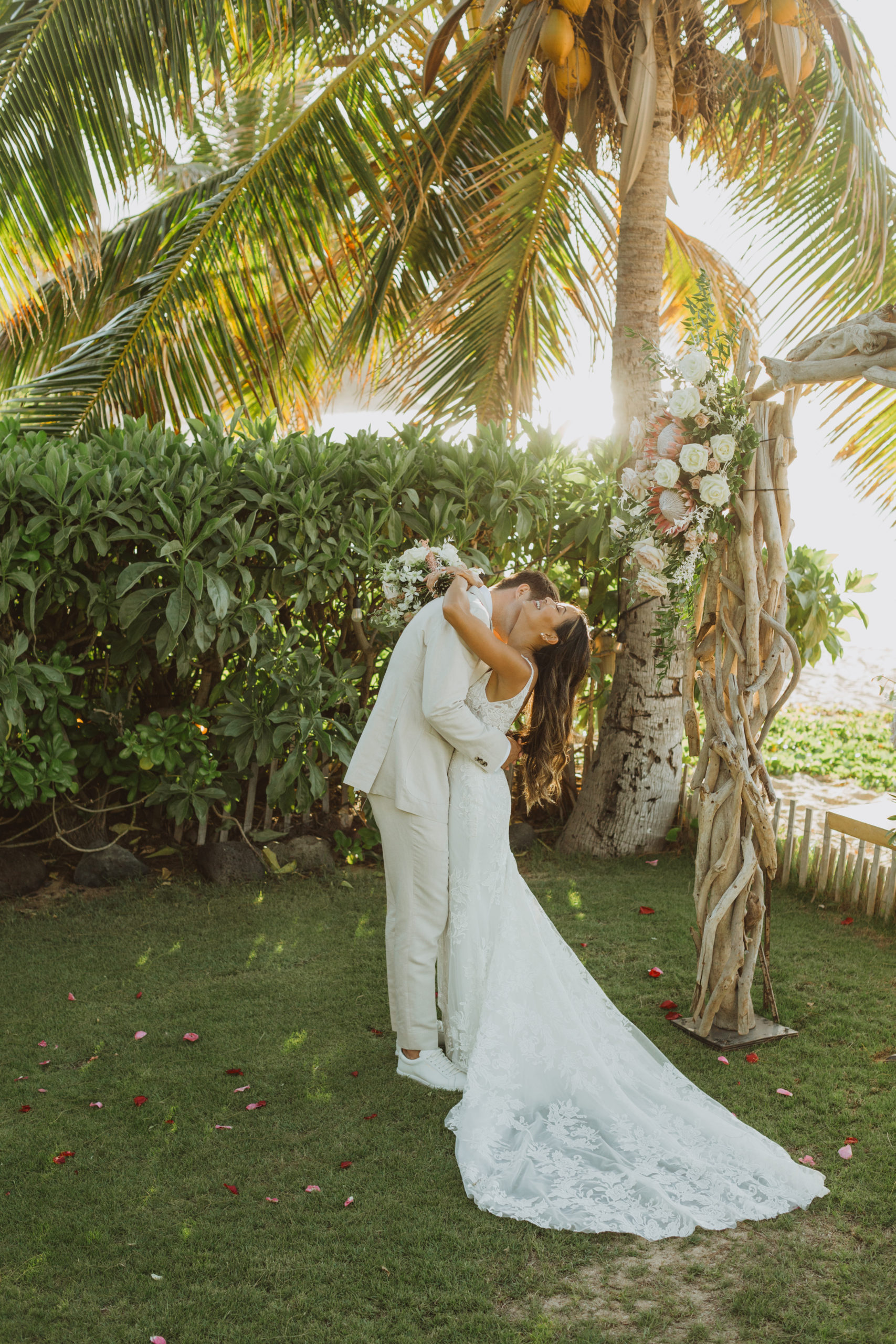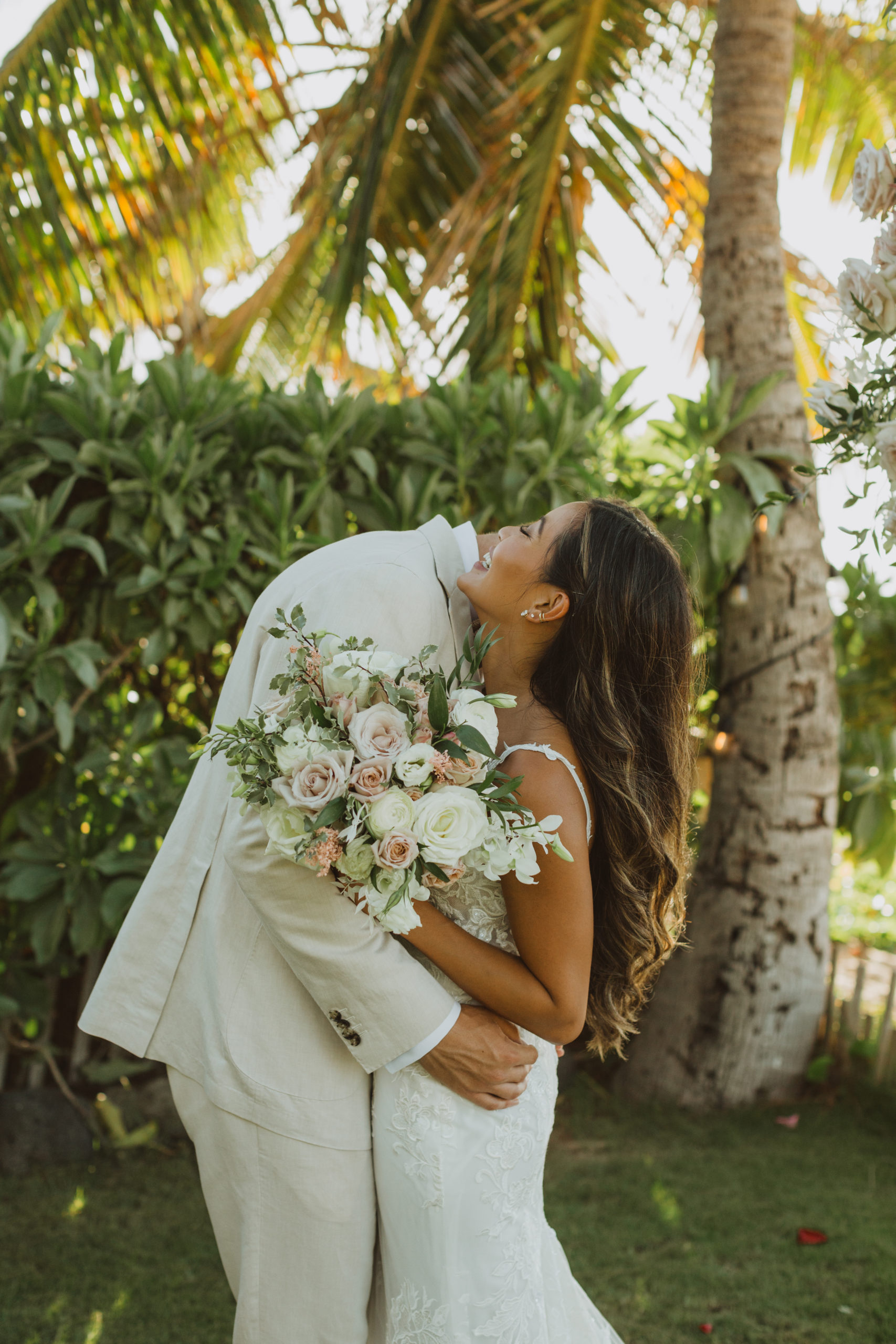We captured their photos on the front lawn, with all the beautiful Hawaiian tropical greens and ended on the beach with that perfect Maui sunset for their wedding photos. It was pure magic to be apart of.
